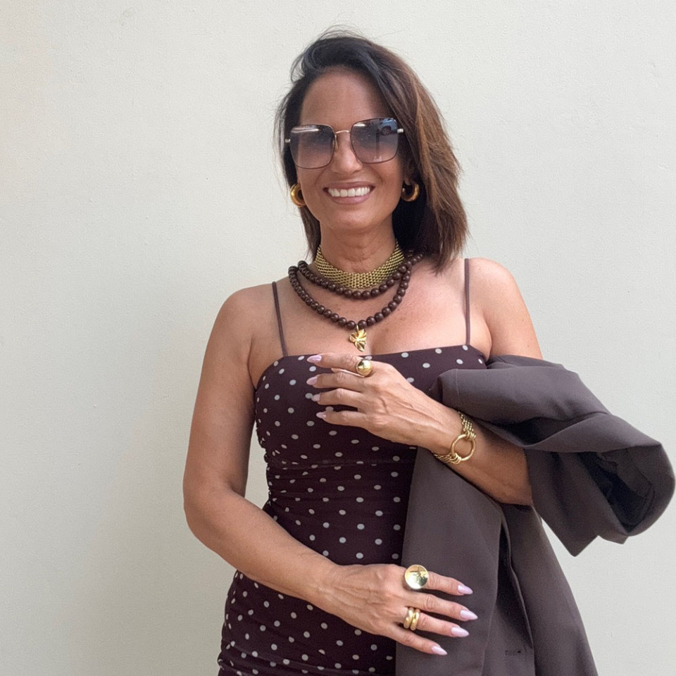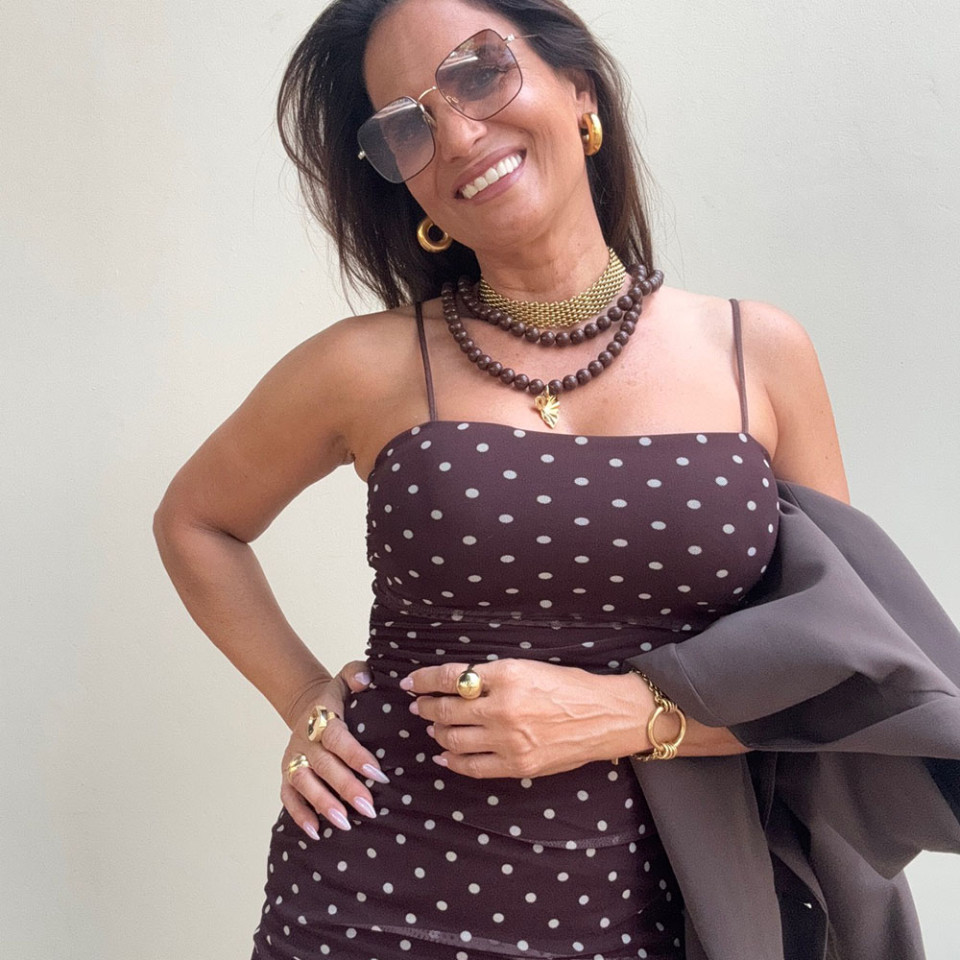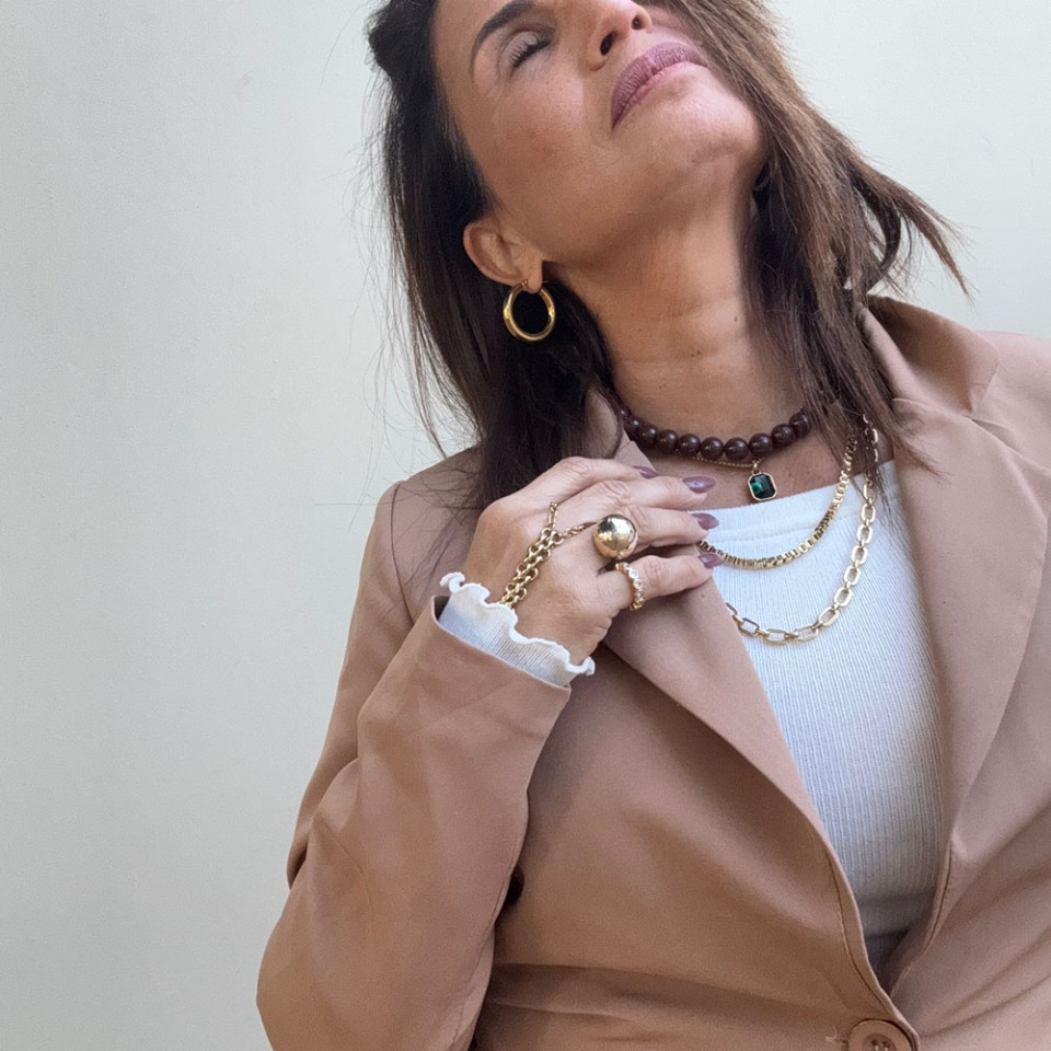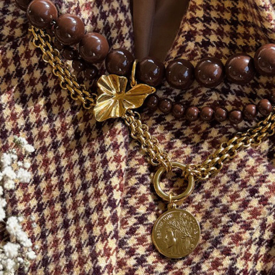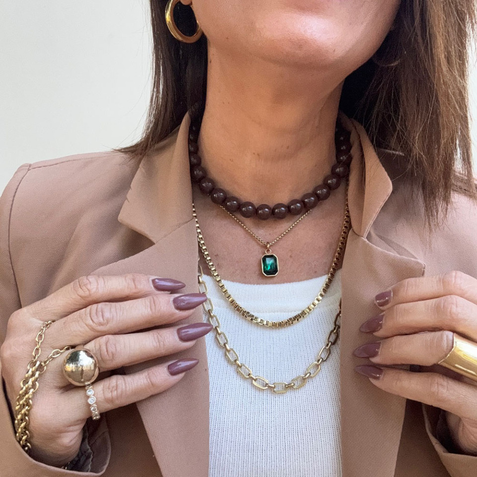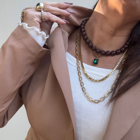 אני עונדת 2 שרשראות אקריל בגוון שוקולד אחת עם תליון שנייה ללא