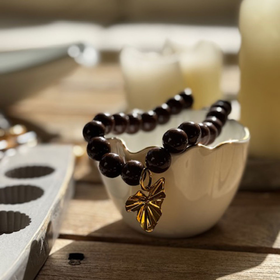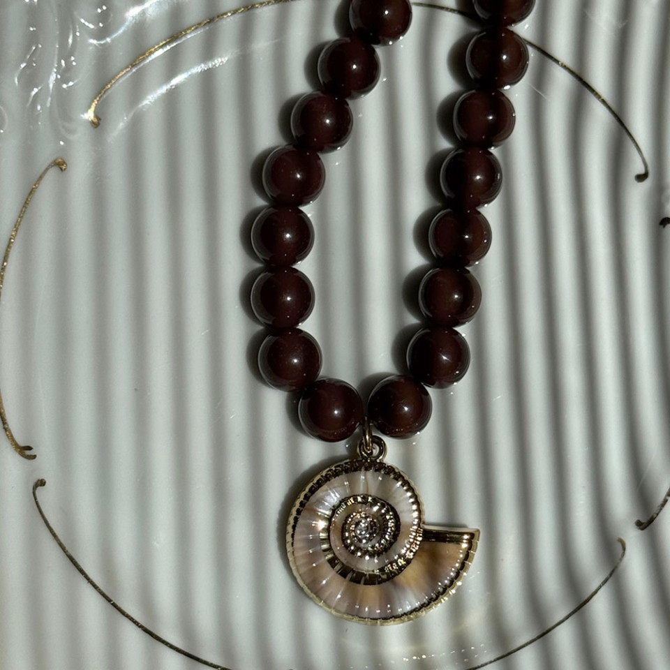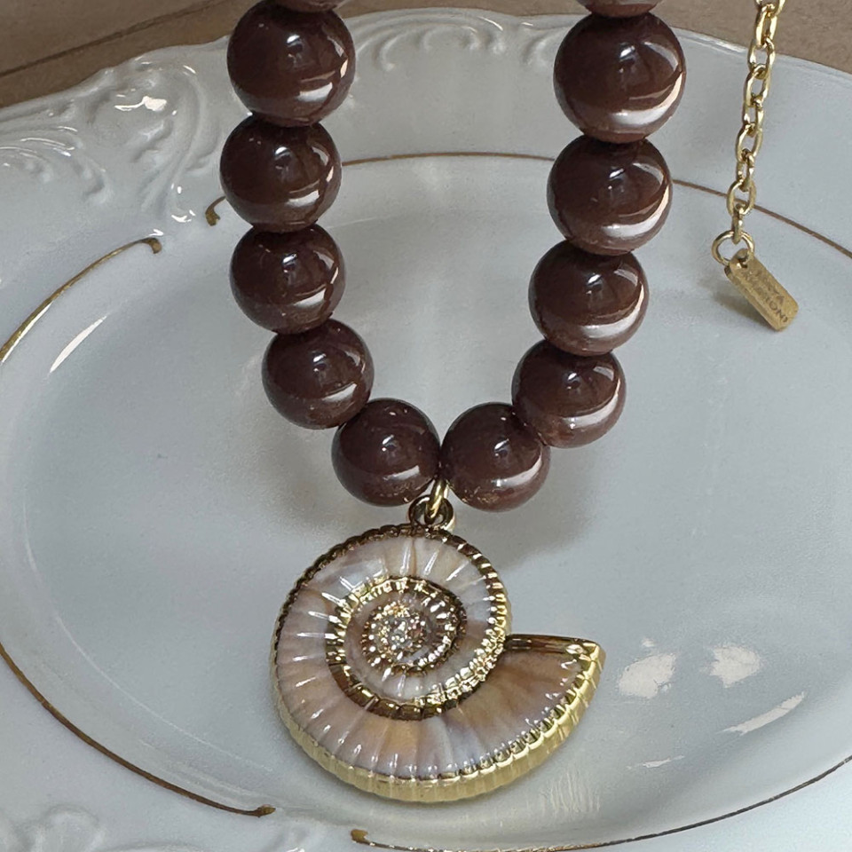 אני עונדת את השרשרת חרוזי שוקולד נקי ללא תלוין
