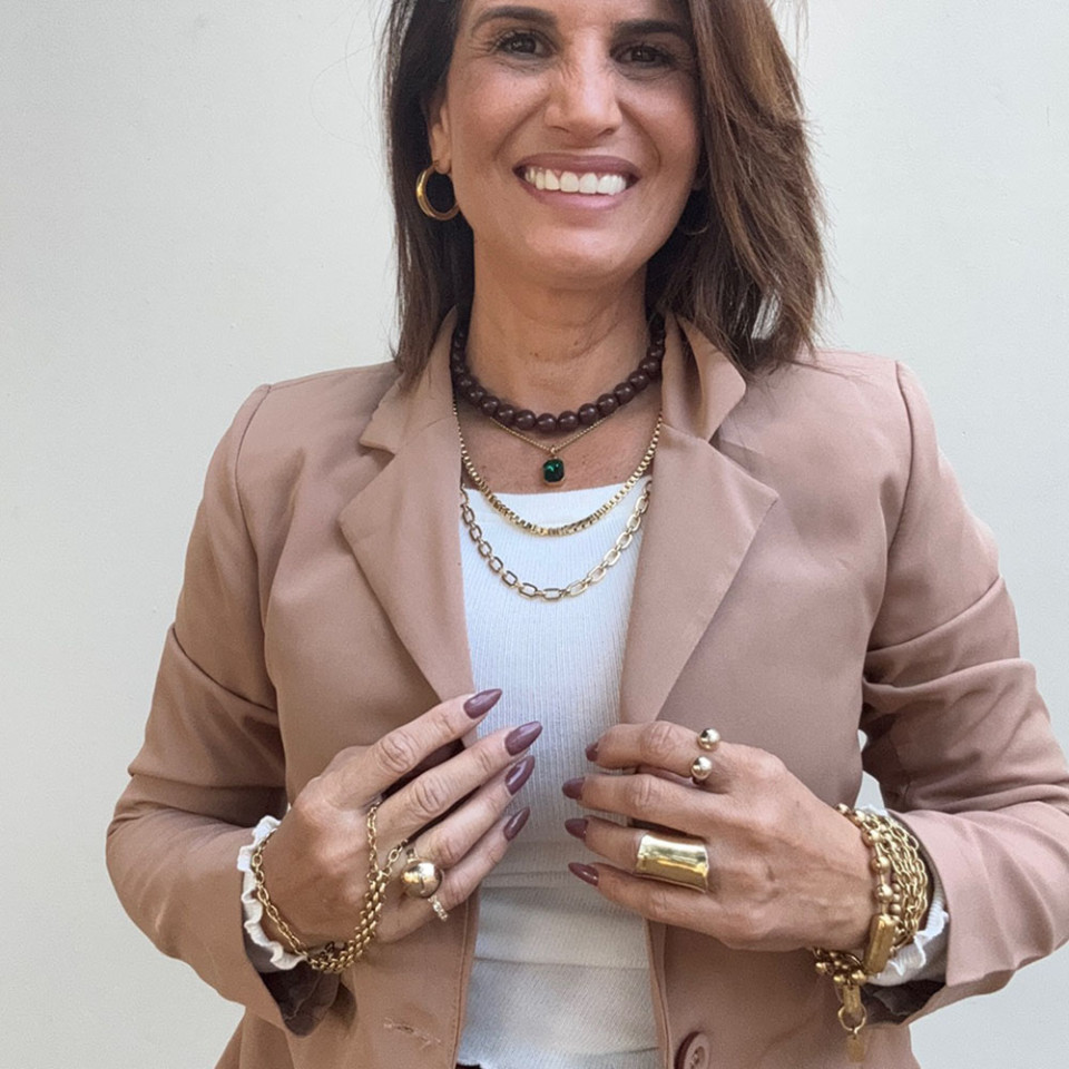 אני עונדת את השרשרת חרוזי שוקולד עם התליון לב מניפה