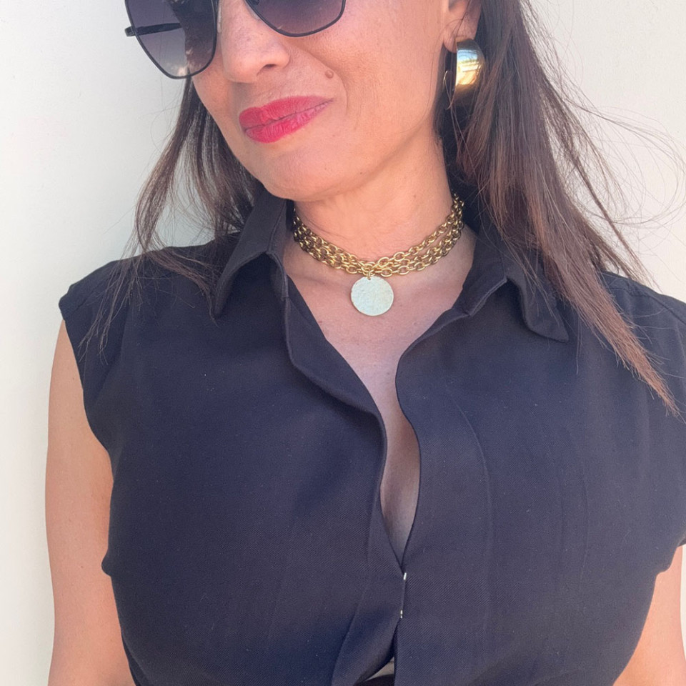 I love this necklace, it is delicate, clean and suitable for any look you choose