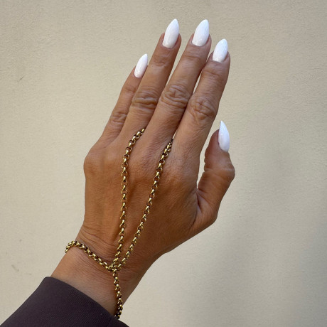 על יד שמאל אני עונדת את הצמיד טבעת בציפוי זהב