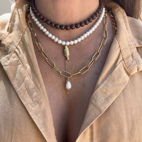השרשרת ה 3 שאני עונדת זו שרשרת אטבים ופנינה