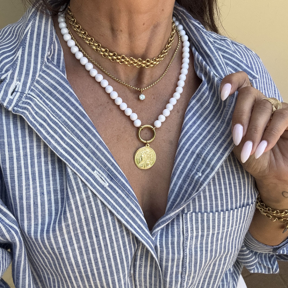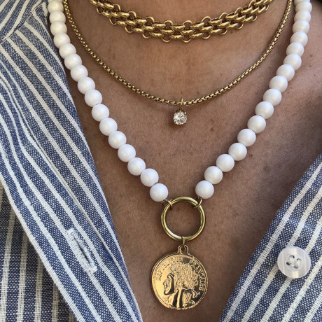 אני עונדת שרשרת חרוזי אקריל לולאה ומטבע