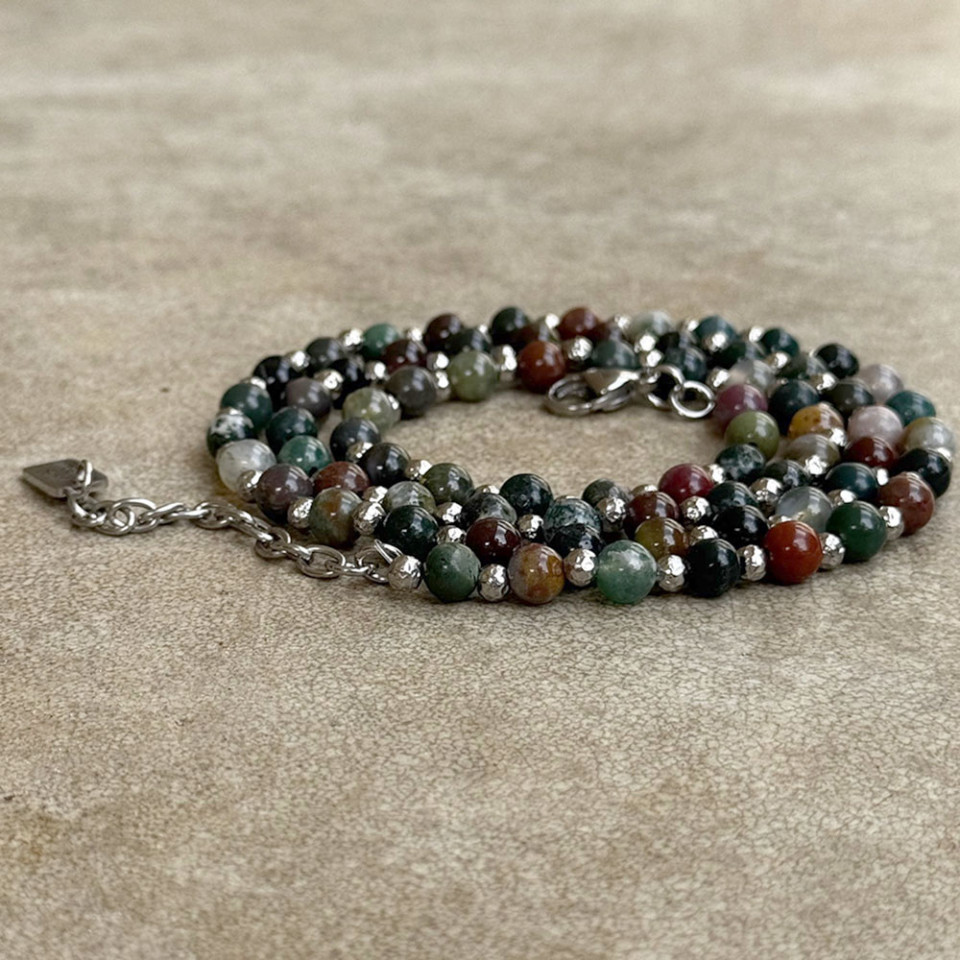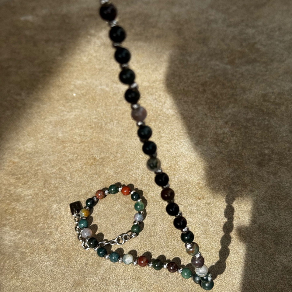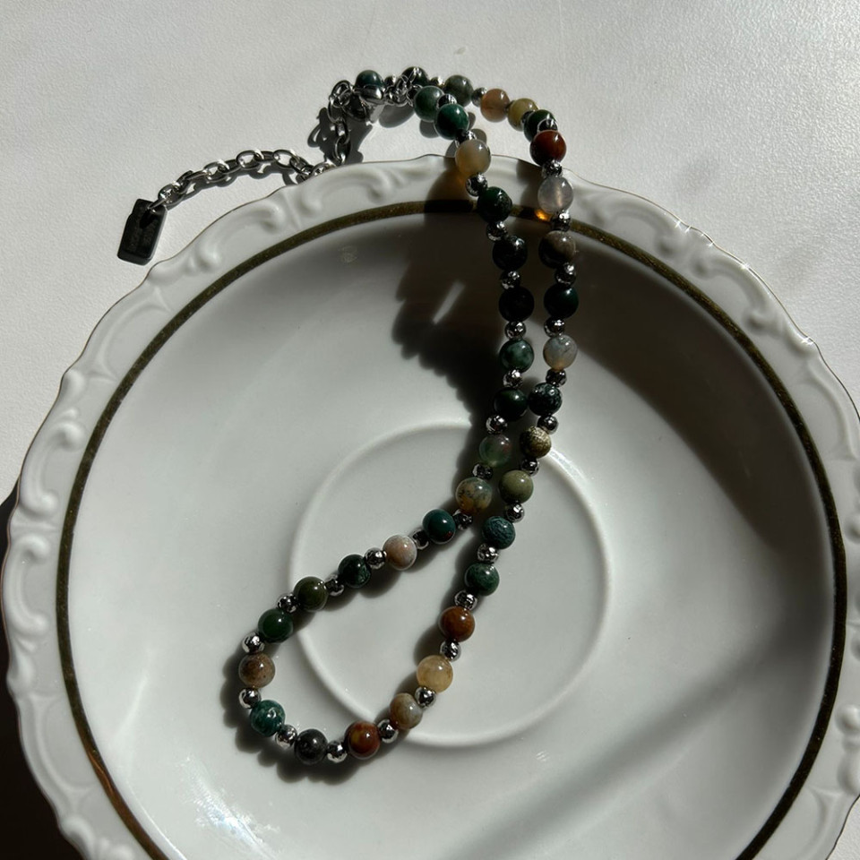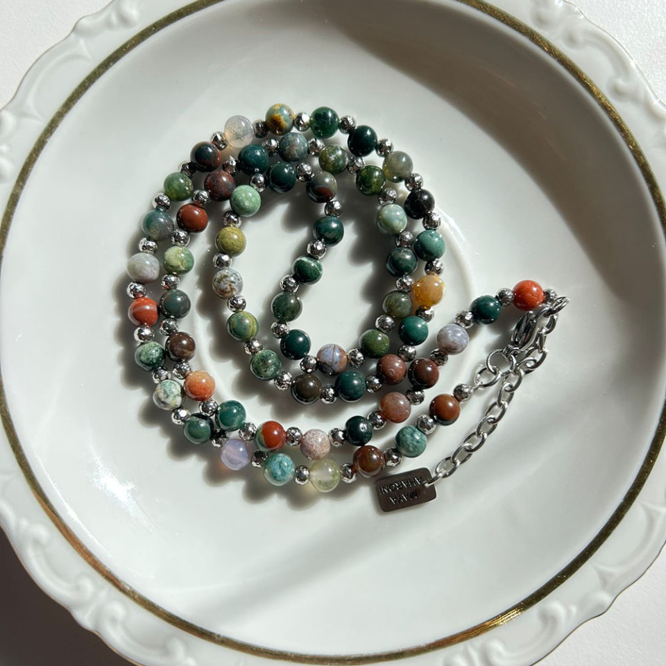 שרשרת אבני אגת בגוונים ירוקים וחומים