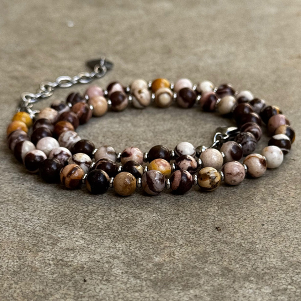 שרשרת אבני אגת בגוונים ורדרדים וחומים