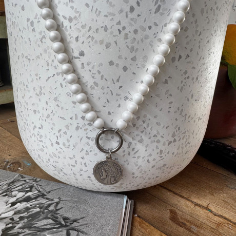 שרשרת חרוזי אקריל תליון צדף לבן מהממם, מאיה אהרוני תכשיטים