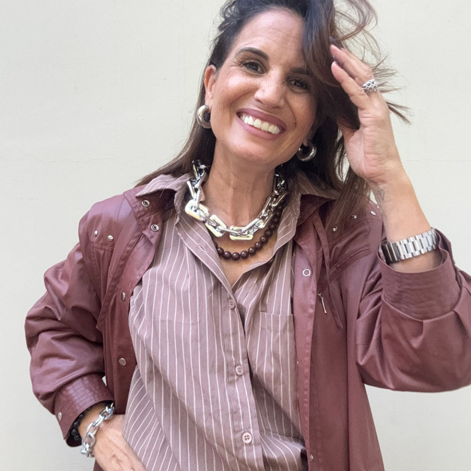 אני עונדת 2 שרשראות אקריל בגוון שוקולד אחת עם תליון שנייה ללא