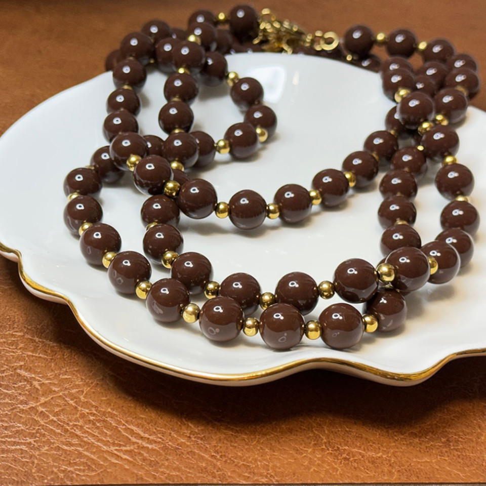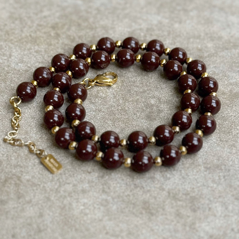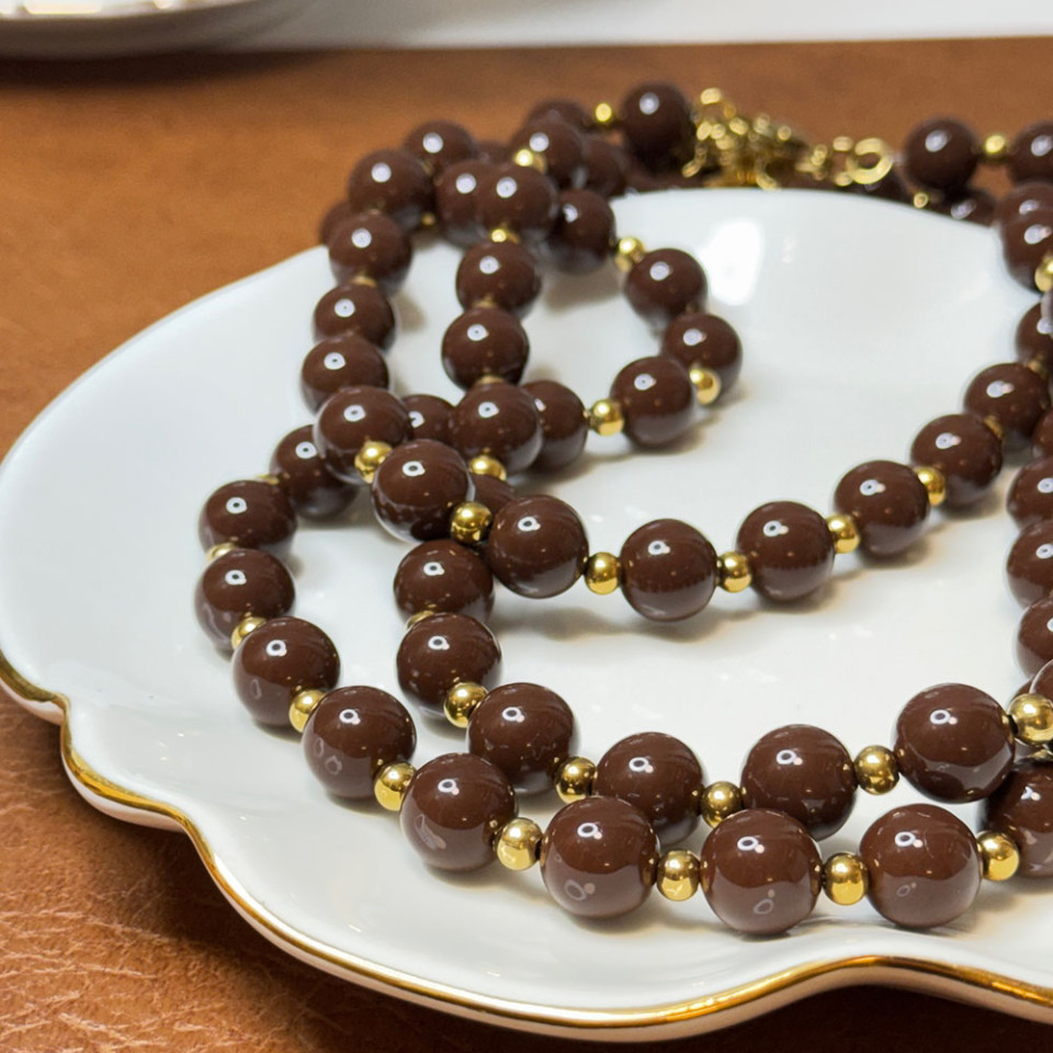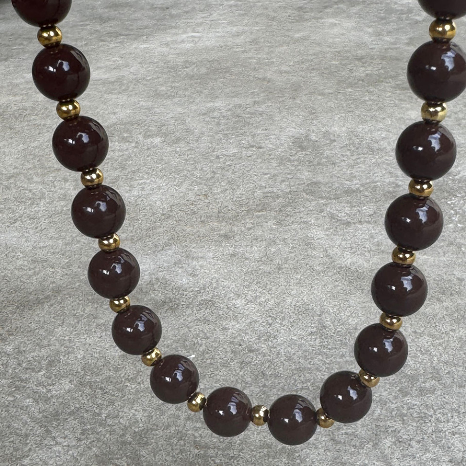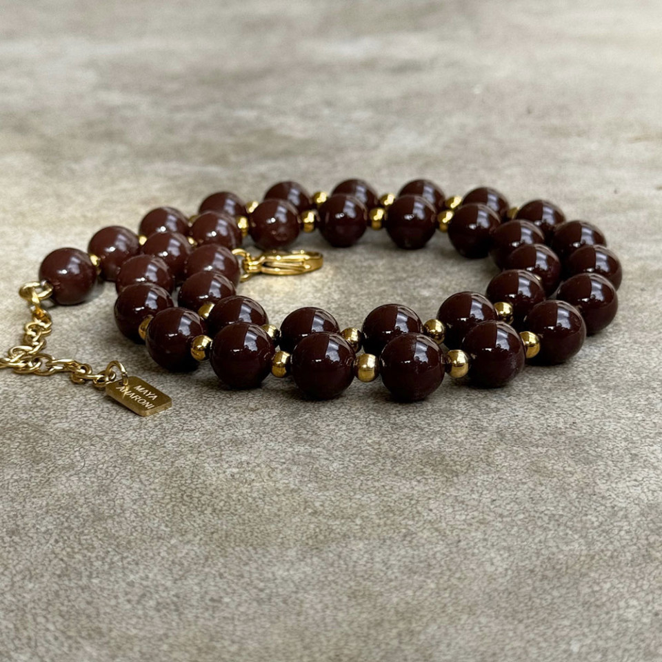 שרשרת חרוזי אקריל שוקולד עם חרוזים בגוון זהב