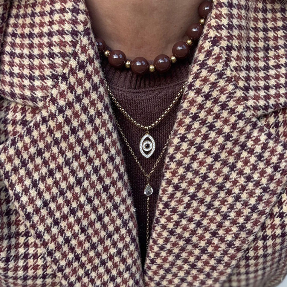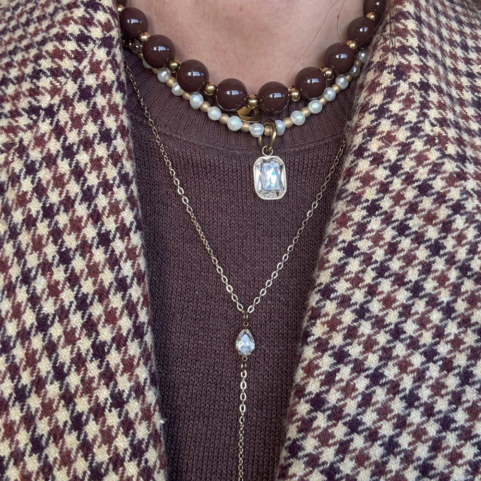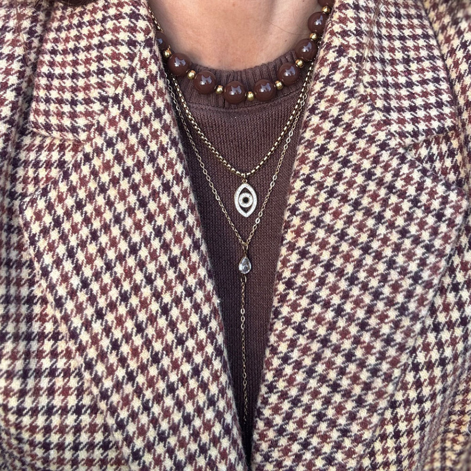 שרשרת חרוזי אקריל שוקולד עם חרוזים בגוון זהב בשילוב שרשראות נוספות