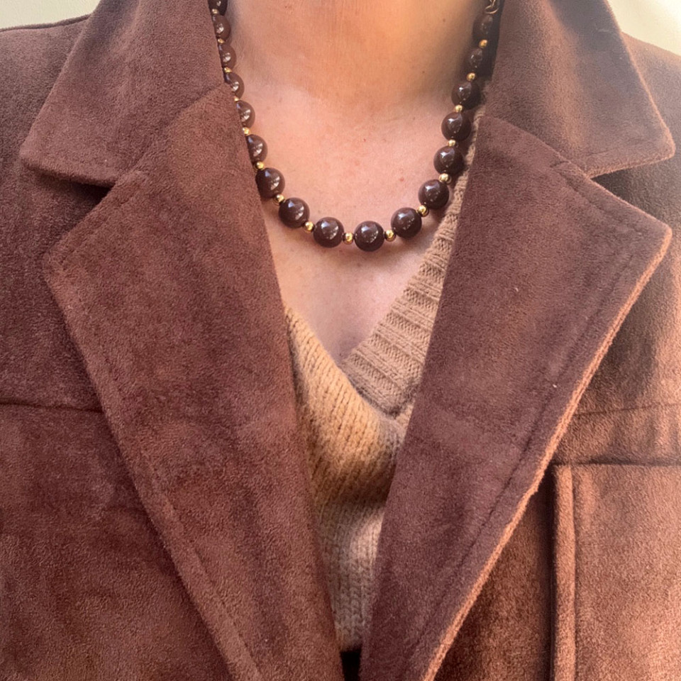 שרשרת חרוזי אקריל שוקולד וזהב או כסוף