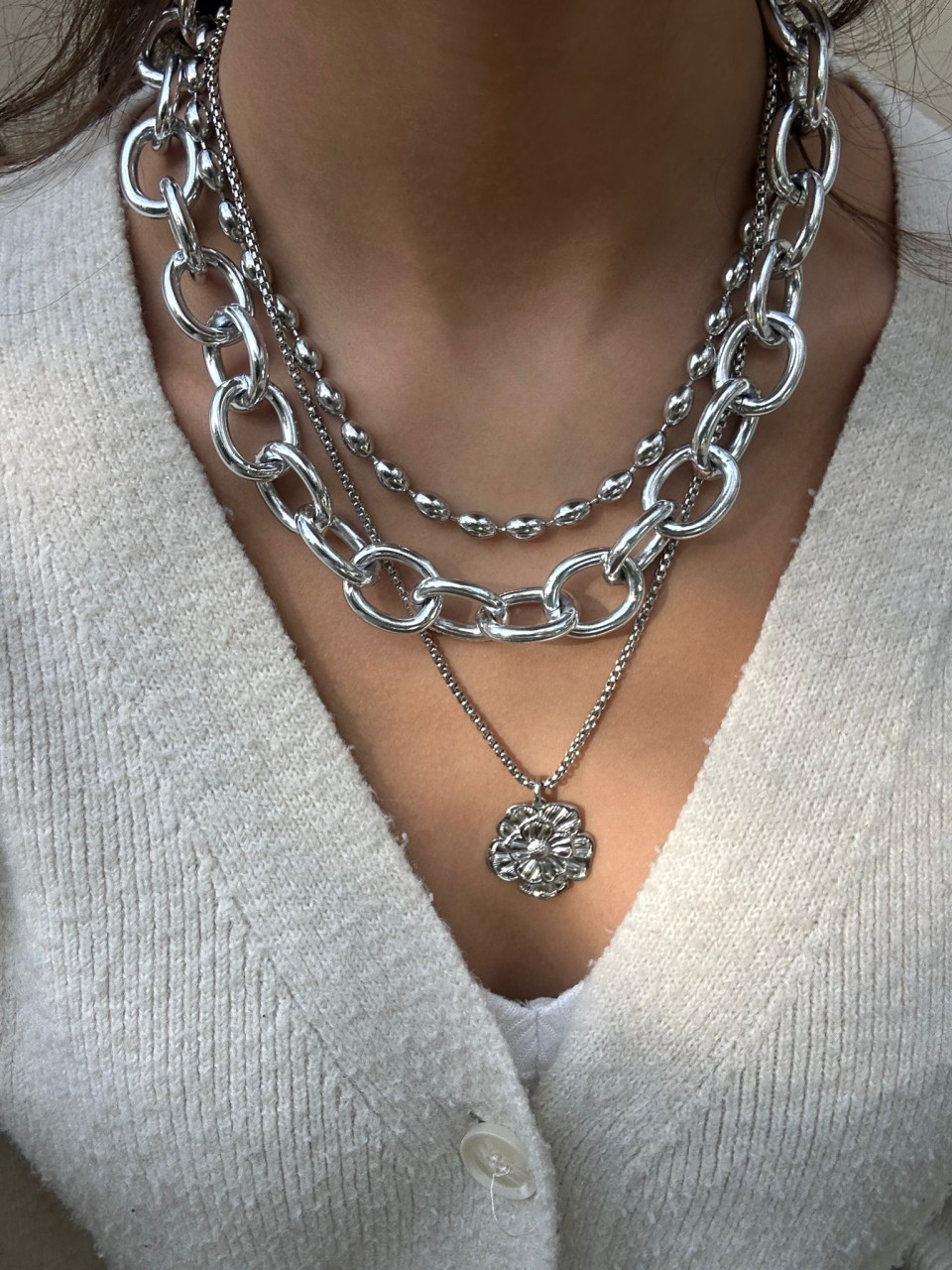 שרשרת כדורים אובלים בגוון כסוף כדורים בקוטר 6 מ"מ
