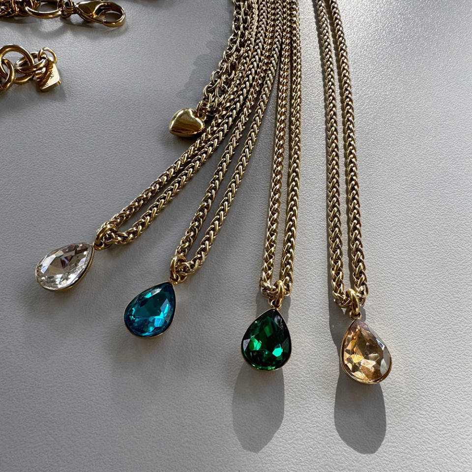 שרשרת קלועה תליון שמפניה, ירוק, טורקיז ושקוף