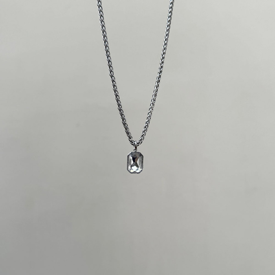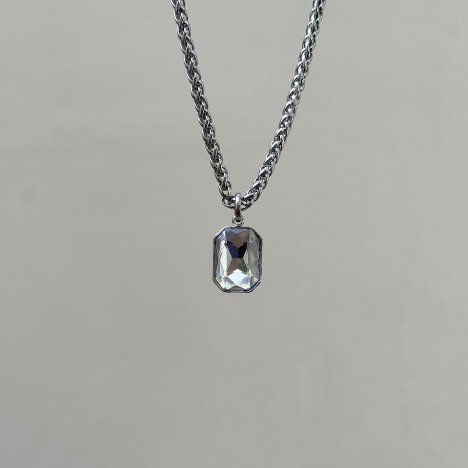 שרשרת קלועה תליון קריסטל שקוף בכסוף