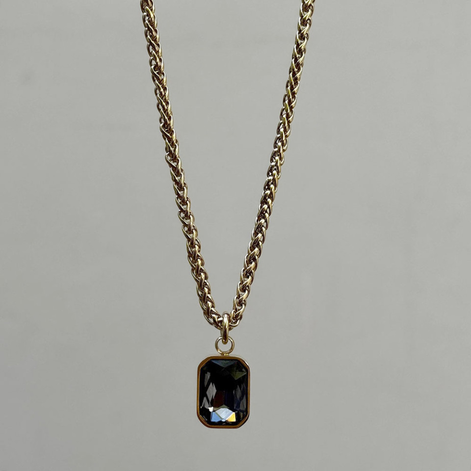 שרשרת קלועה בציפוי זהב תליון מלבני שקוף