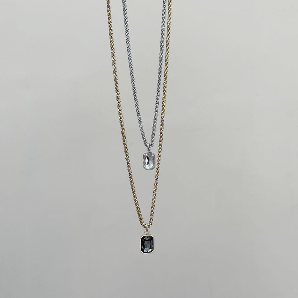 שרשרת קלועה תליון מלבני שקוף ואפור בכסוף עמיד במים וציפוי זהב