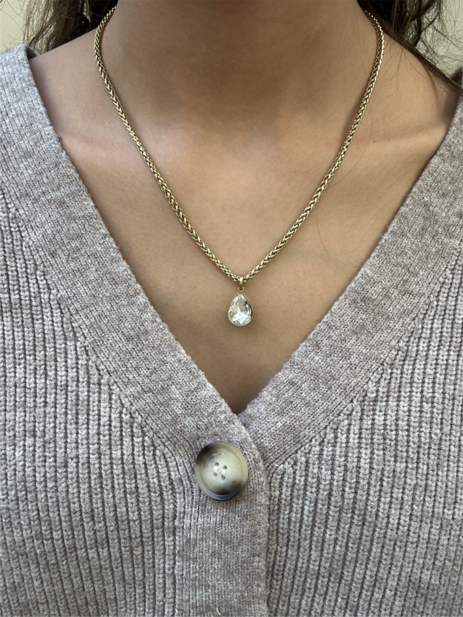 שרשרת קלועה עבה עם קריסטל שקוף בצורת טיפה בציפוי זהב