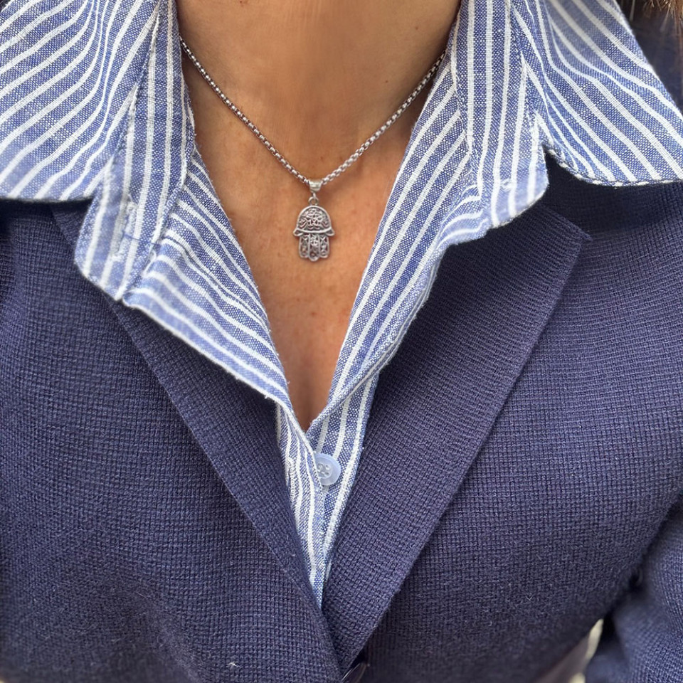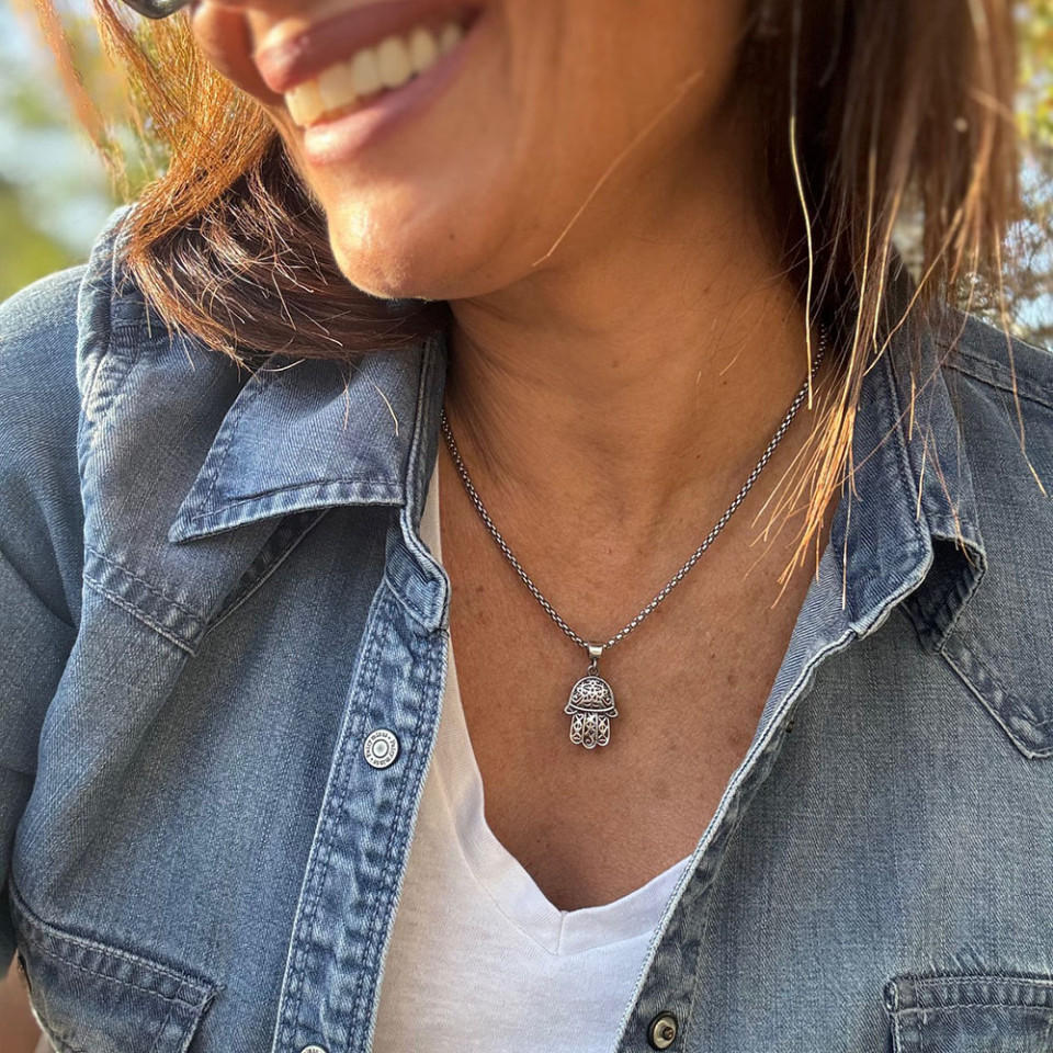 תכשיטים השראה למלחמה, תליון השראה, מאיה אהרוני תכשיטים, שרשרת חמסה כסף 925 מאיה אהרוני תכשיטים השרשרת שרשרת חמסה