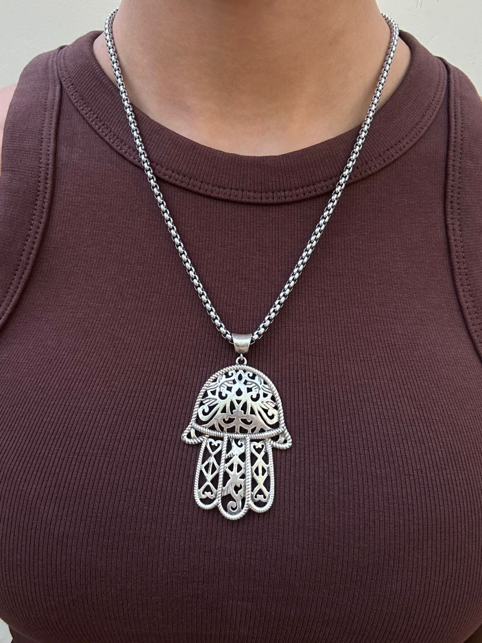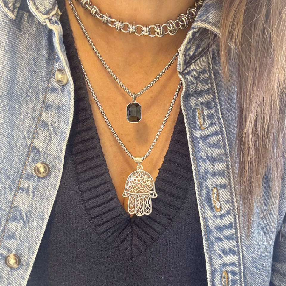 שרשרת חמסה גדולה בגוון כסוף עמיד במים