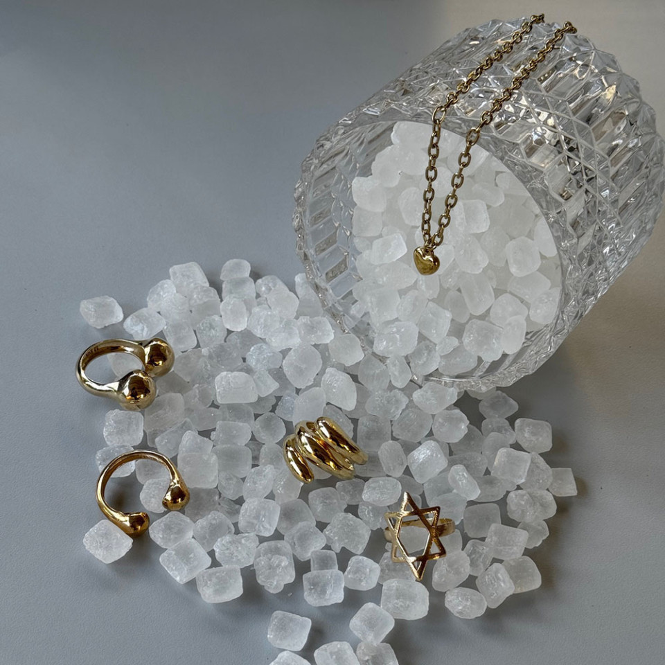מציגה לך שרשראות צמידים אמאלה ומסבירה קצת איך אנחנו משכפלות את הקולקצייה