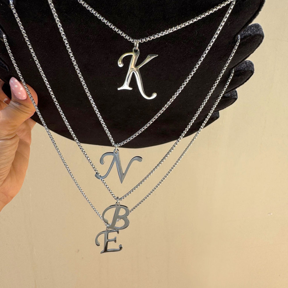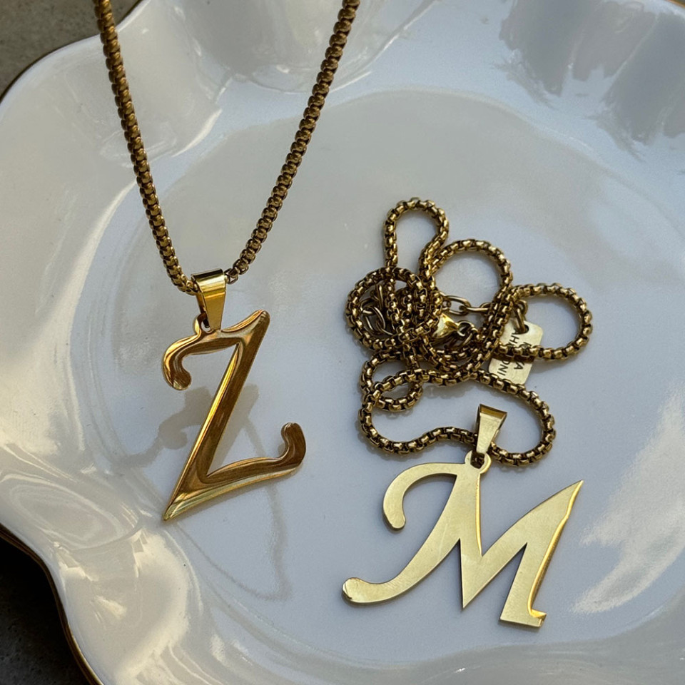 צוואר מהממם עם שרשרת אלומניום שרשרת אות ושרשרת דג