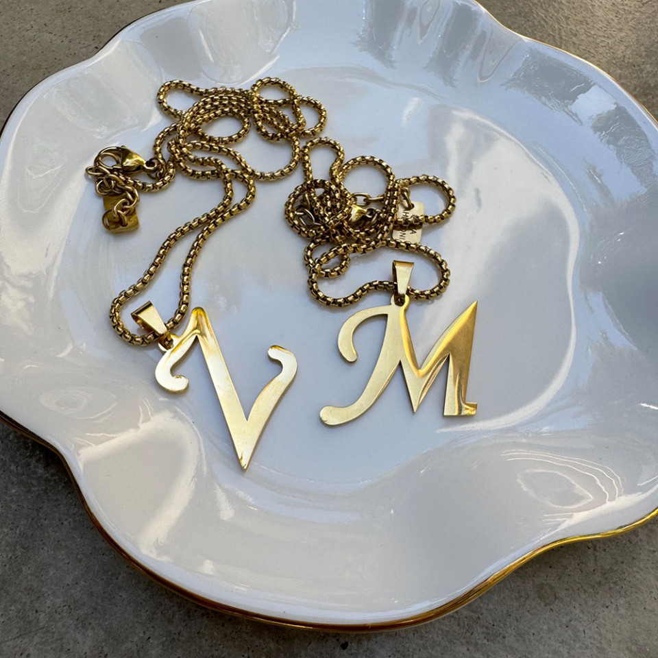 שרשרת אות M גדולה בציפוי זהב