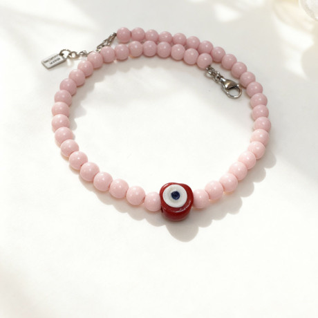 שרשרת חרוזי אקריל ורוד ועין אדומה