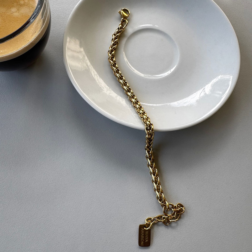 צמיד קלוע בגוון זהב בהיר מאיה אהרוני תכשיטים