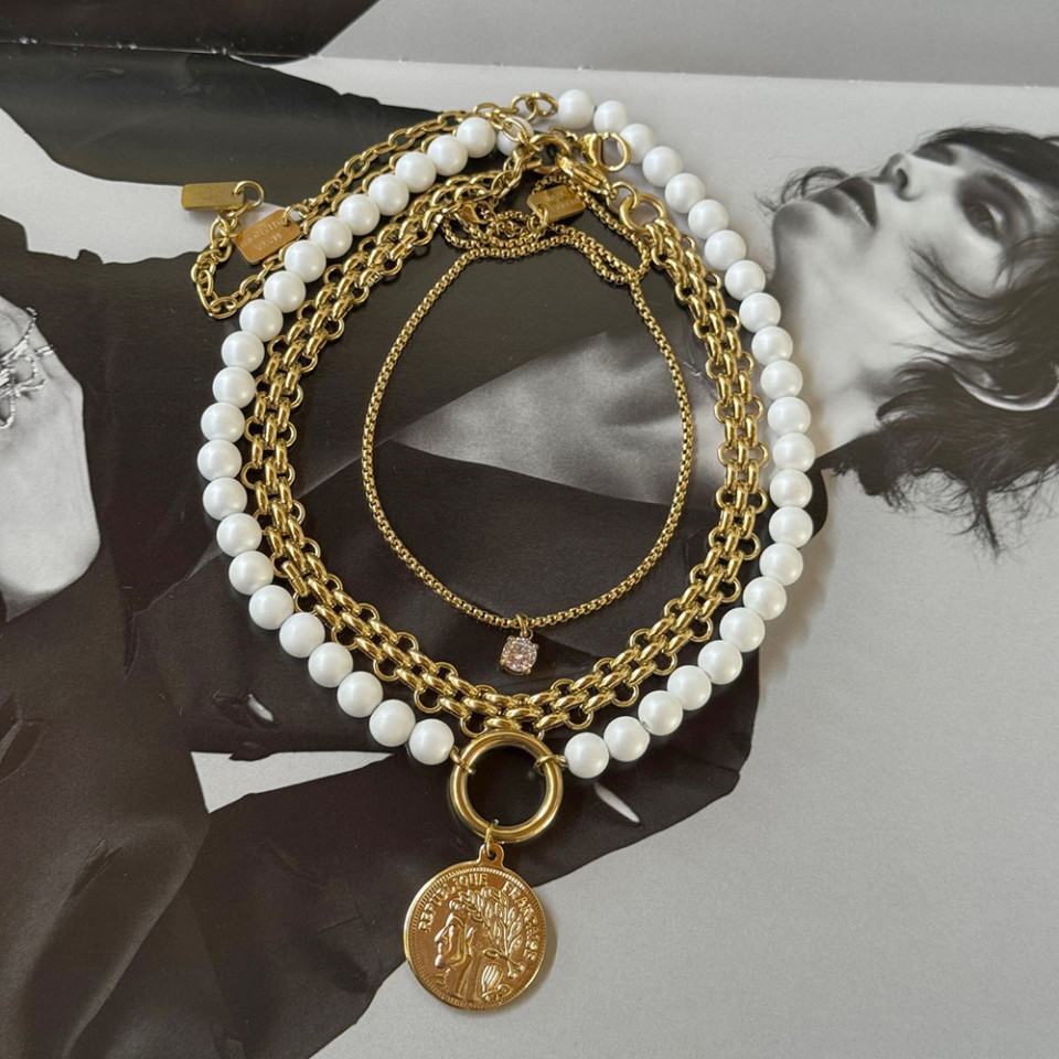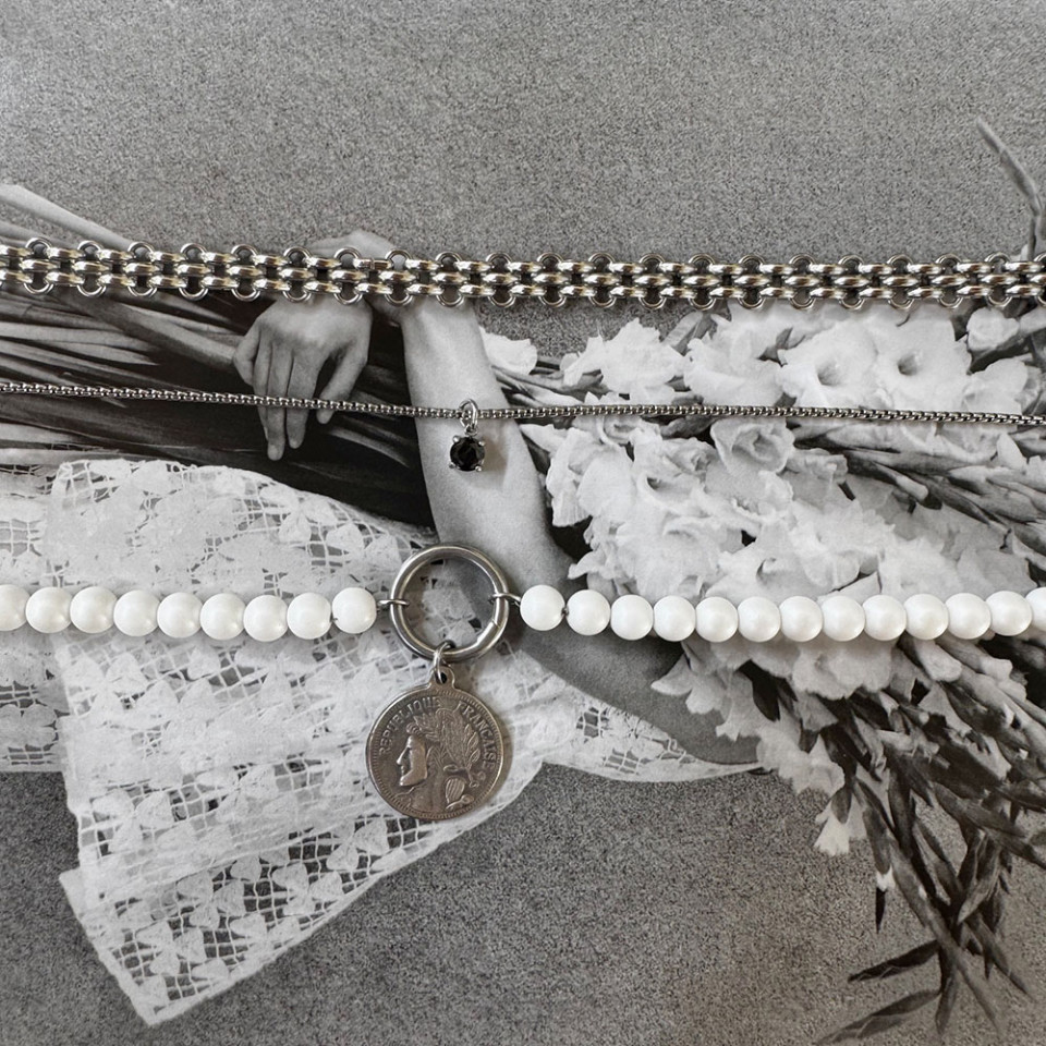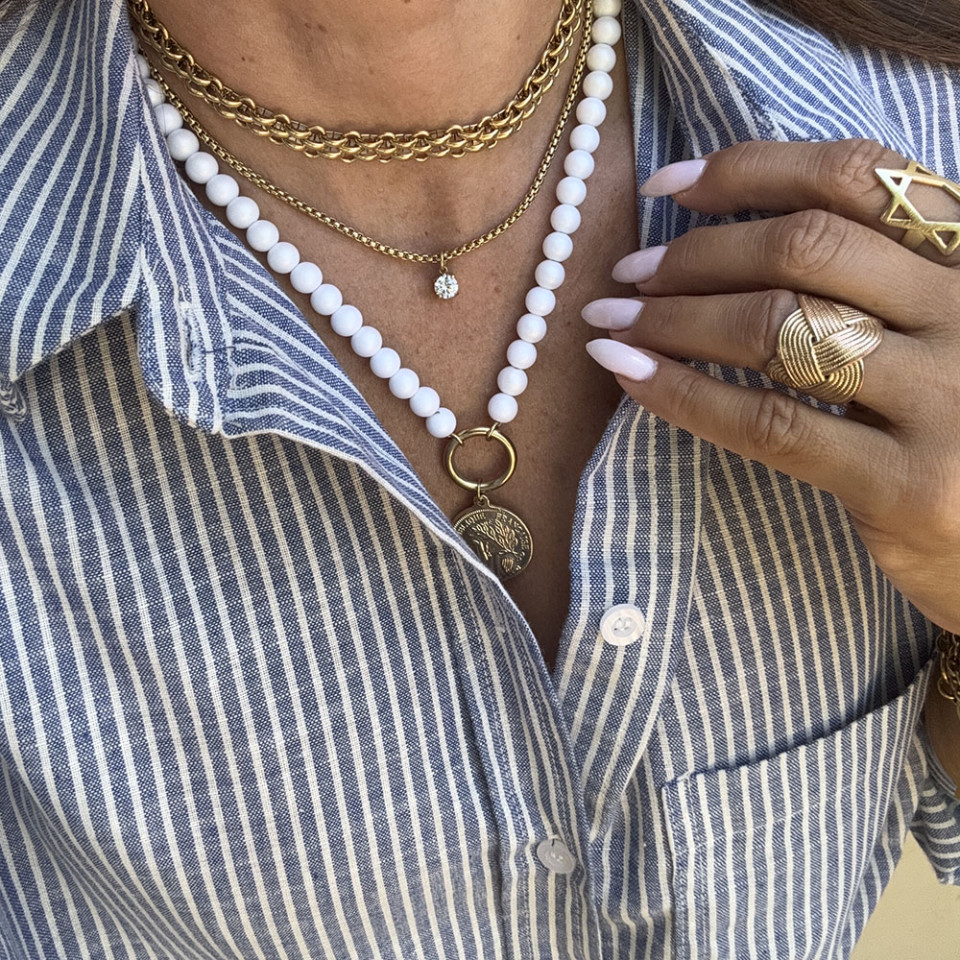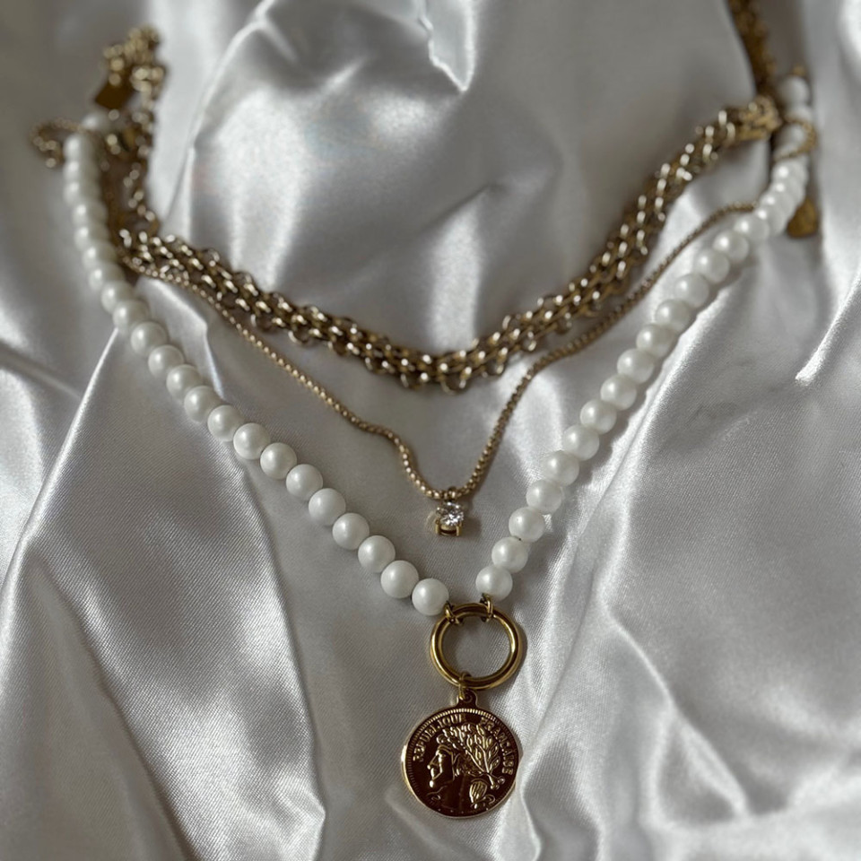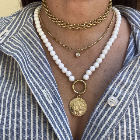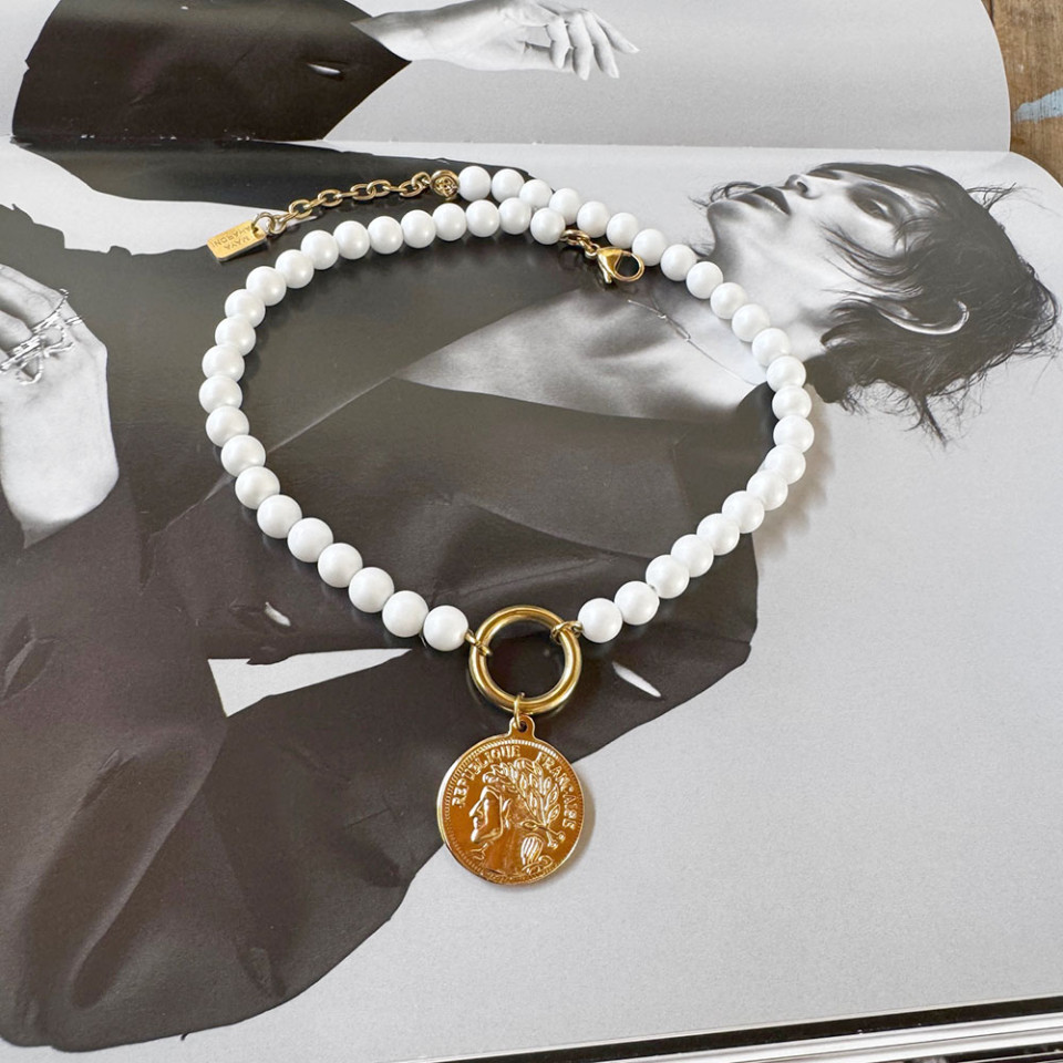 שרשרת חרוזי אקריל לולאה ומטבע 280 ש"ח