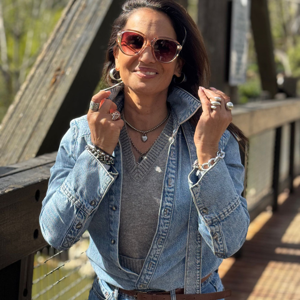 אני עונדת את עגילי חישוק רחבים פתוחים בעבודת יד קוטר 4.5 ס"מ בכסף 925