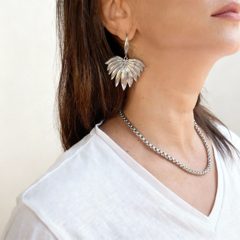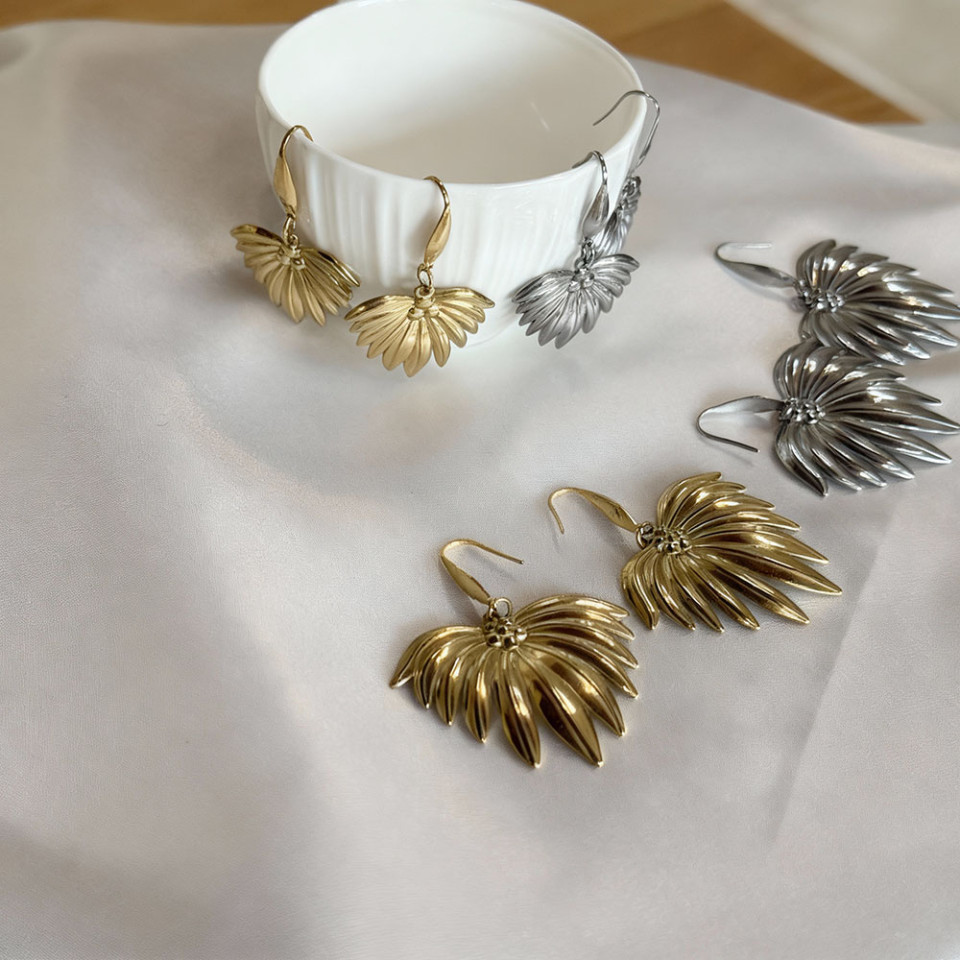 זוג עגילי פרח מניפה