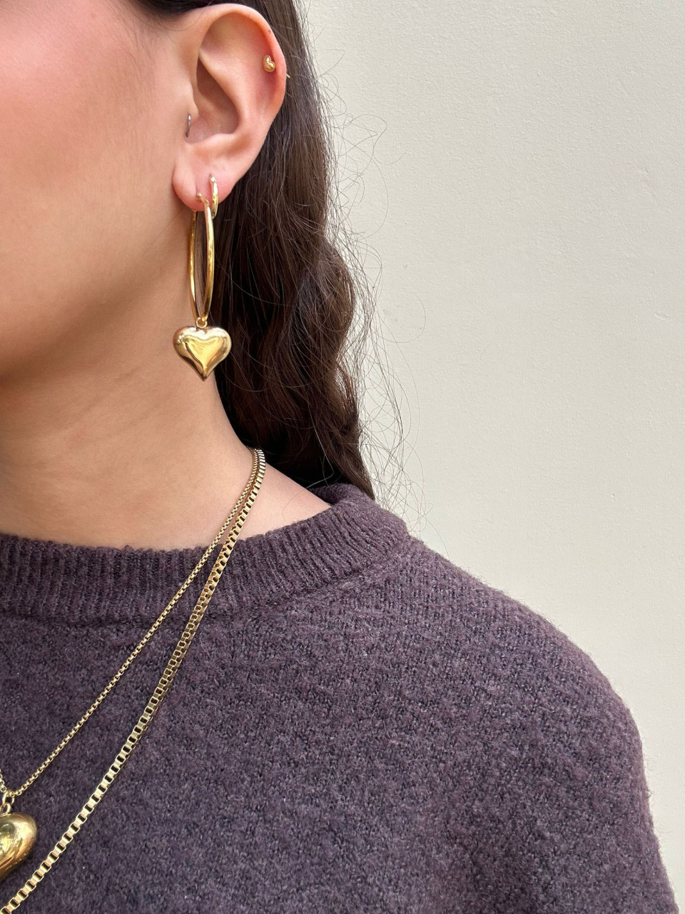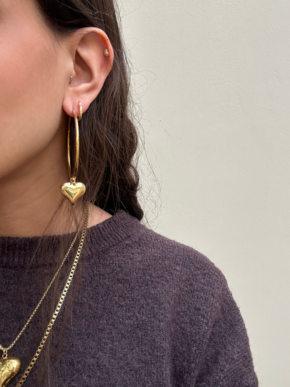 זוג עגילי חישוק לב חלול בציפוי זהב קוטר 5 ס"מ