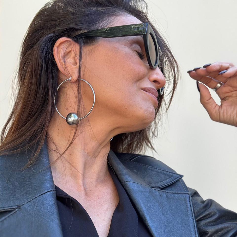 עגילי חישוק גדולים עם כדור , עגילי חישוק דקים ונוחים , עגילי כסף עמידים במים , עגילים מאיה אהרוני תכשיטים