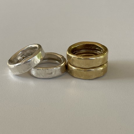 בתמונה 4 טבעות מרוקעות מושלמות כסף 925 ובראס מאיה אהרוני תכשיטים
