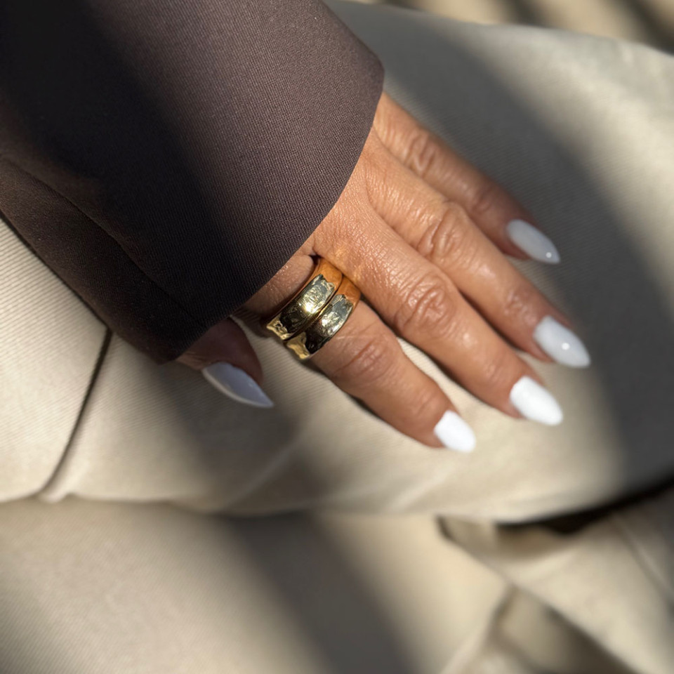 אני עונדת על אצבע יד ימין זוג טבעות מרוקעות מושלמות עשויות כסף 925