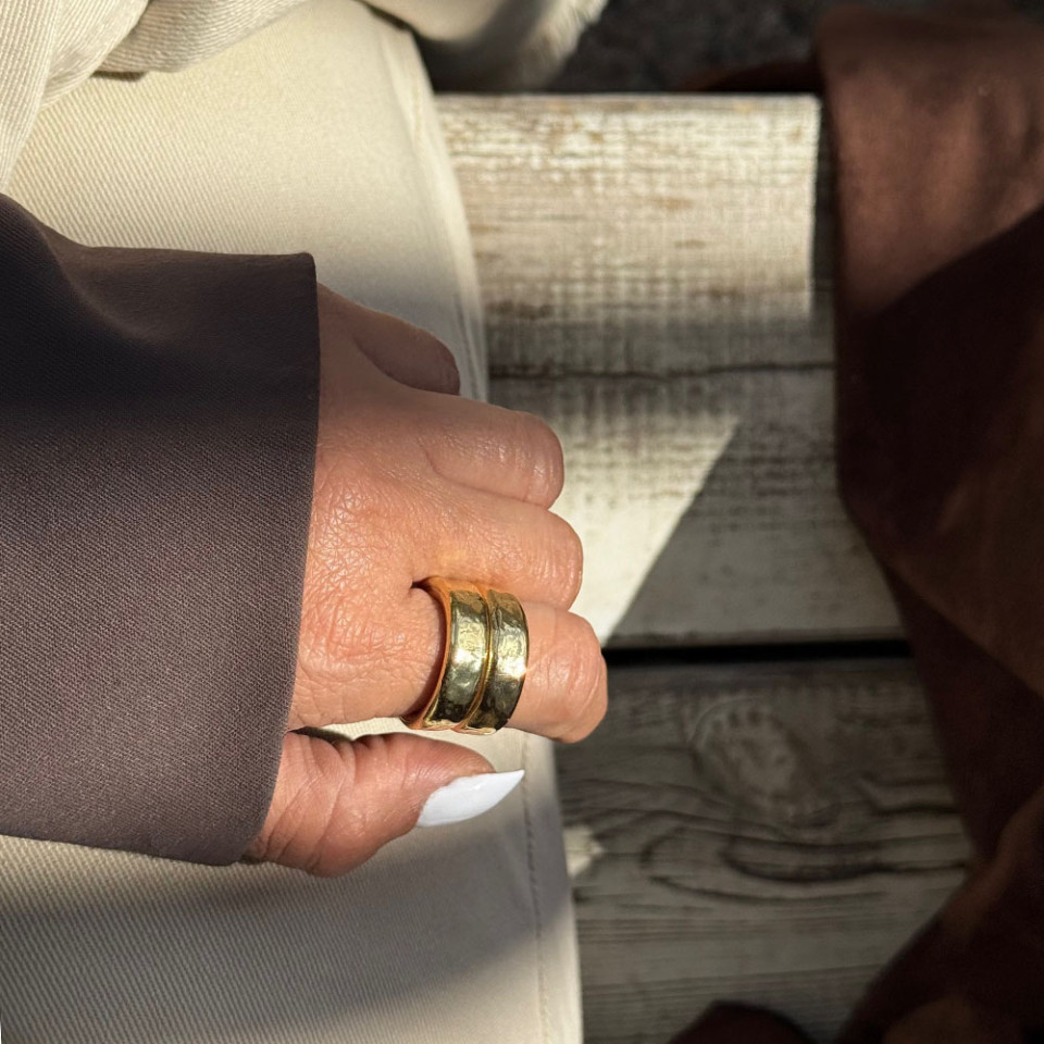 טבעת עגולה ומרוקעת בציפוי זהב
