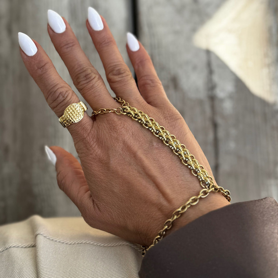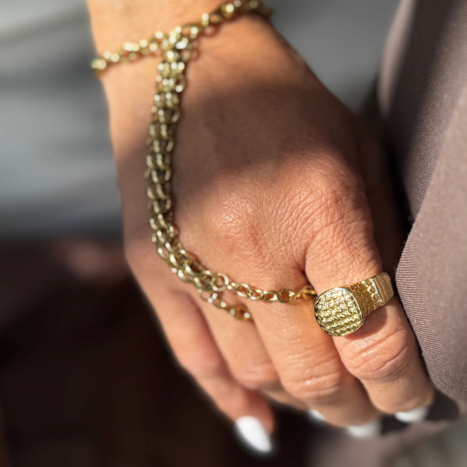 טבעת חותם מרוקעת ציפוי זהב 14 קארט 2 מיקרון